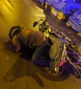 Mediante el patrullaje motorizado que realizaba el personal de Seguridad Ciudadana por las inmediaciones del Mercado Nuevo San Miguel, se auxilió a un joven que sufrió un accidente en su moto lineal. El conductor aparentemente se encontraba en estado de ebriedad al momento del incidente, lo que habría ocasionado la pérdida de control del vehículo.