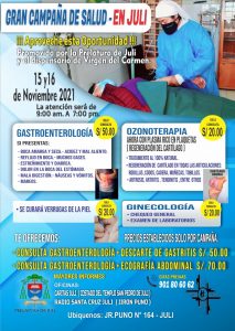 Esta acción social se desarrollará en la ciudad de Ilave de la provincia de El Collao, el 13 y 14 de noviembre. Mientras que en Juli – Chucuito, la atención, se realizará el 15 y 16 del mismo mes de este año. “Tenemos especialistas que tratarán problemas de salud de las personas”, expresó el obispo.